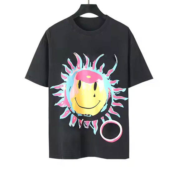 เสื้อยืดลายกราฟิกแขนสั้นเปิดไหล่ตกสำหรับ2025