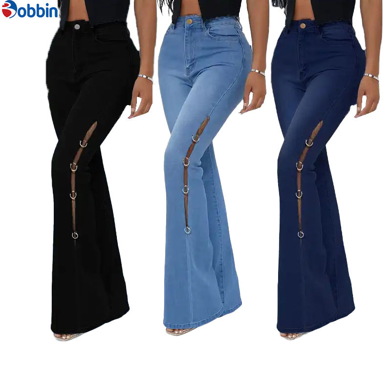 กางเกงยีนส์ทรงบู้ทคัทเอวสูงแฟชั่นใหม่สำหรับผู้หญิง สีน้ำเงิน กางเกงยีนส์ขาบานทรงสกินนี่สำหรับผู้หญิง