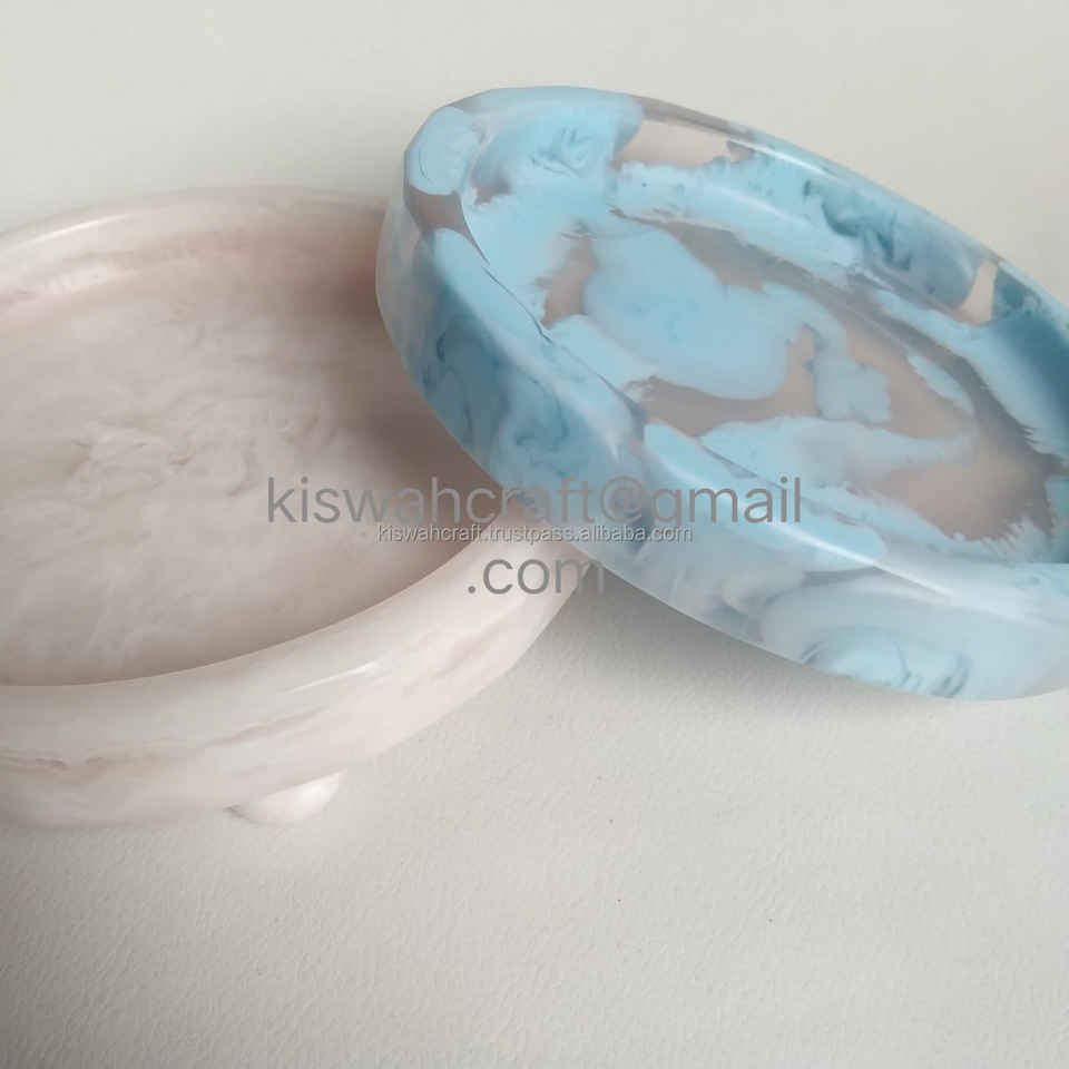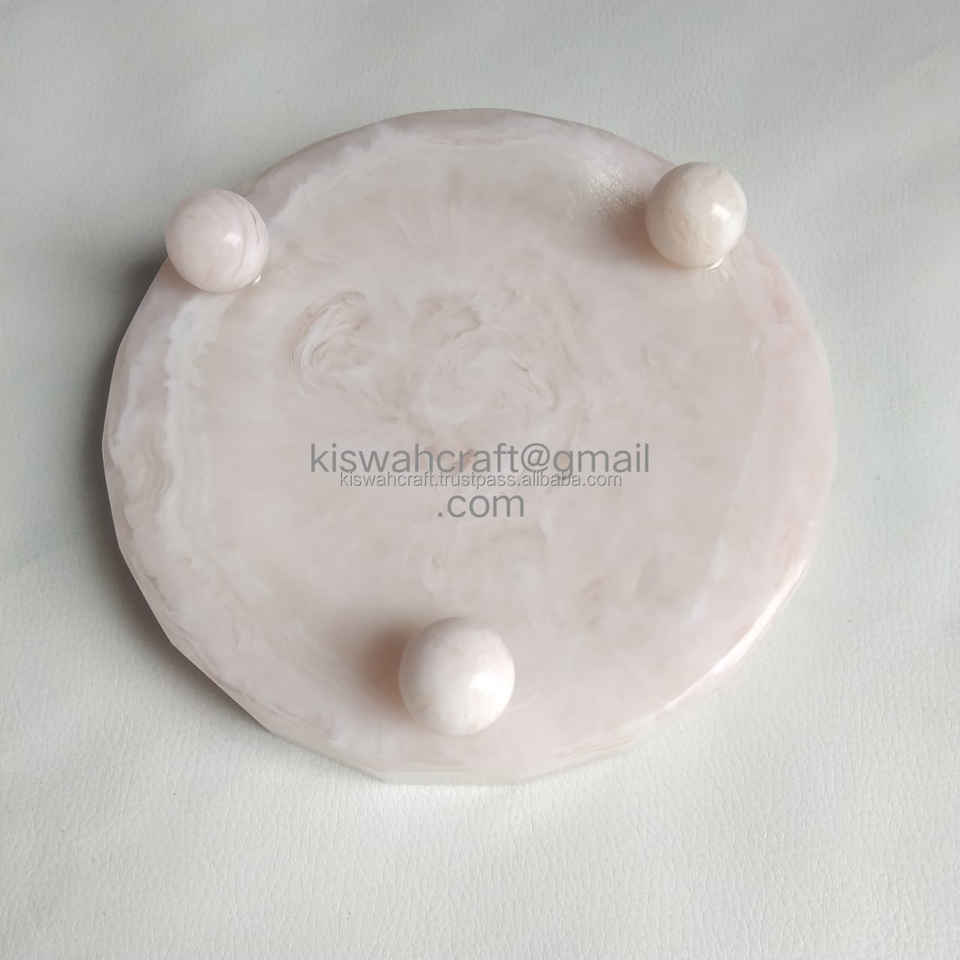 ถาดรองจานแบบมีฐานวางบอลสำหรับตกแต่งบ้านดีไซน์ยอดนิยมถาดรองเรซิ่นสีขาวมีลวดลายหมุนสำหรับผลไม้และของแห้ง