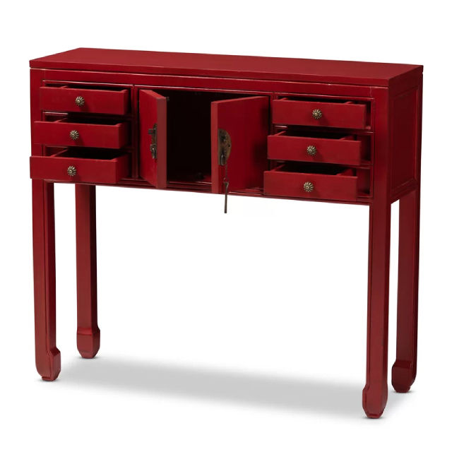 คอนโซลลิ้นชักไม้แข็งสีแดงมาใหม่อุปกรณ์ตกแต่งบ้านทางเข้าโรงแรม