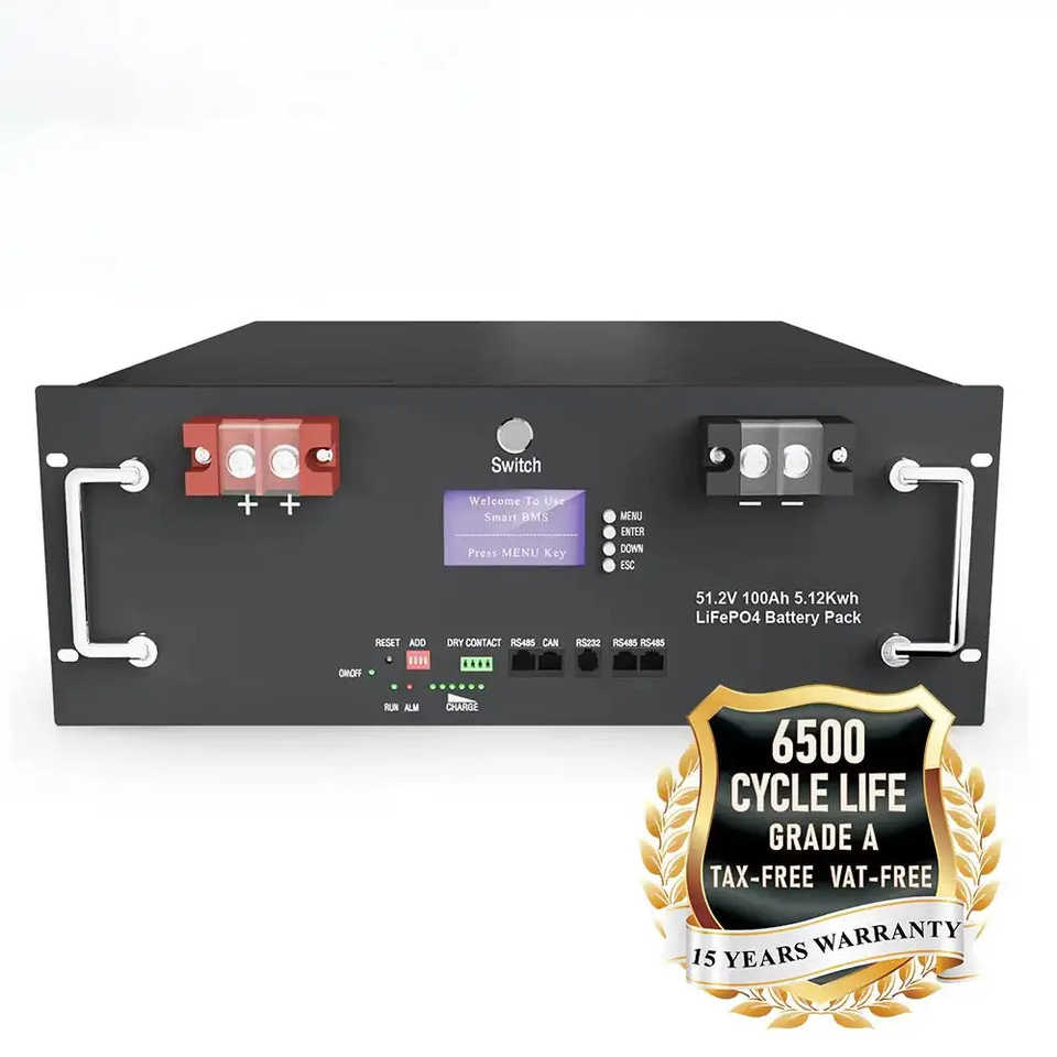 New Arrival Home Solar System 51.2V 200Ah Lifepo4 Battery 5KWh 10KWh 15KWh Capacity CAN Rack Communication Port BMS Lifepo4 IP65