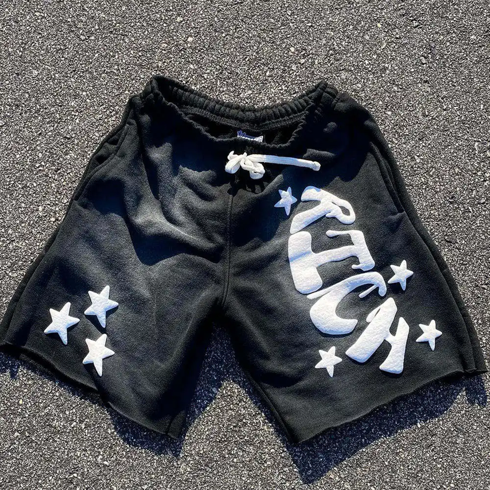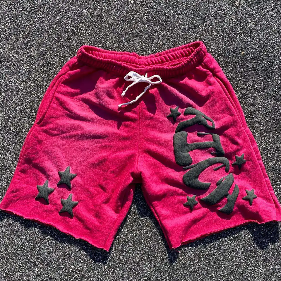 กางเกงกีฬาขาสั้นพิมพ์ลายพัฟสำหรับผู้ชายเสื้อผ้าแนวสตรีทแวร์สำหรับฤดูร้อน