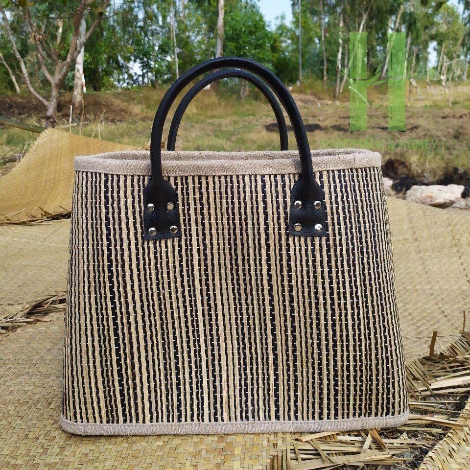 กระเป๋าถือหญ้าทะเลเป็นมิตรต่อสิ่งแวดล้อม,กระเป๋าถือพับได้พร้อมสายหนังดีไซน์เฉพาะผลิตในเวียดนามสินค้าใหม่