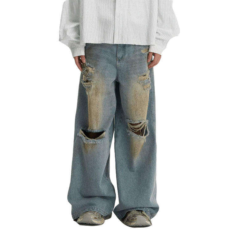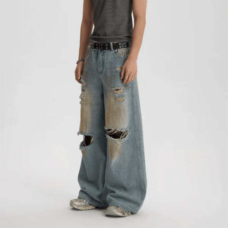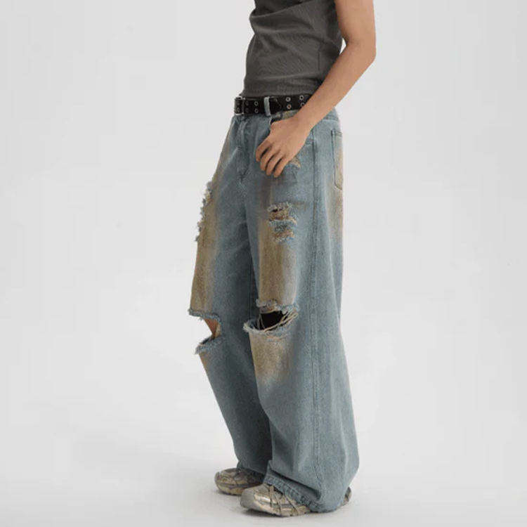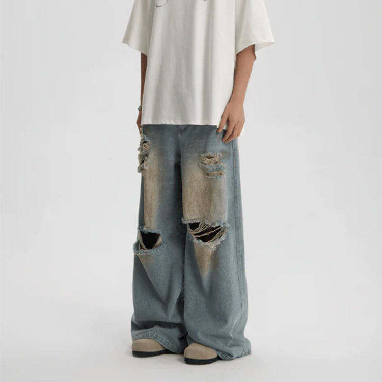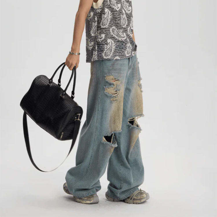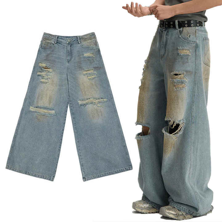 กางเกงยีนส์ขาดๆ ทรงหลวม สไตล์สตรีทแวร์ ฮิปฮอป วินเทจ ไซส์ใหญ่ รุ่นใหม่มาแรง ขายดี