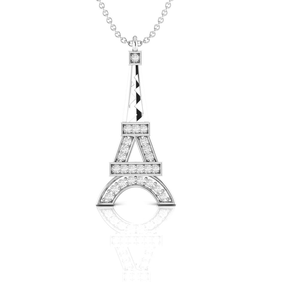 New Arrival IGI Certified VVS Lab Grown Diamond 14k Solid Gold Eiffel Tower Design Pendant Necklace For Women At Low Price