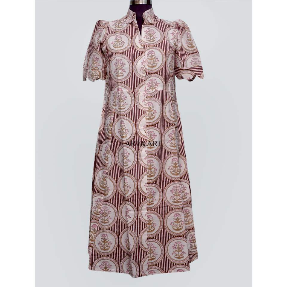เดรสทรงเอไลน์สไตล์อินเดียมาใหม่ ชุดลำลองสำหรับงานปาร์ตี้ ชุดเดรสผู้หญิงสำหรับฤดูร้อน ใส่ได้ทุกวัน สวมใส่สบาย ผ้าฝ้าย 100% แบรนด์ Kangura ดีไซน์หวานละมุนเป็นธรรมชาติ