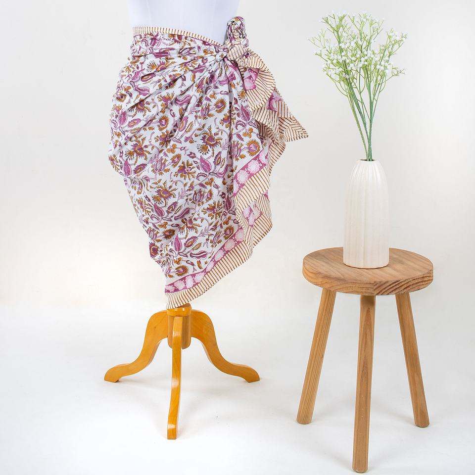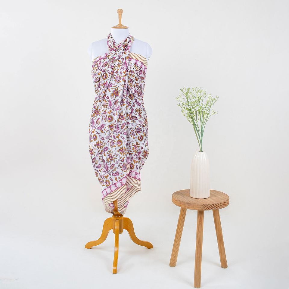 ผ้าโสร่งผ้าฝ้ายพิมพ์ลายดอกไม้สีชมพูทำด้วยมือแบบอินเดียมาใหม่ฤดูร้อน
