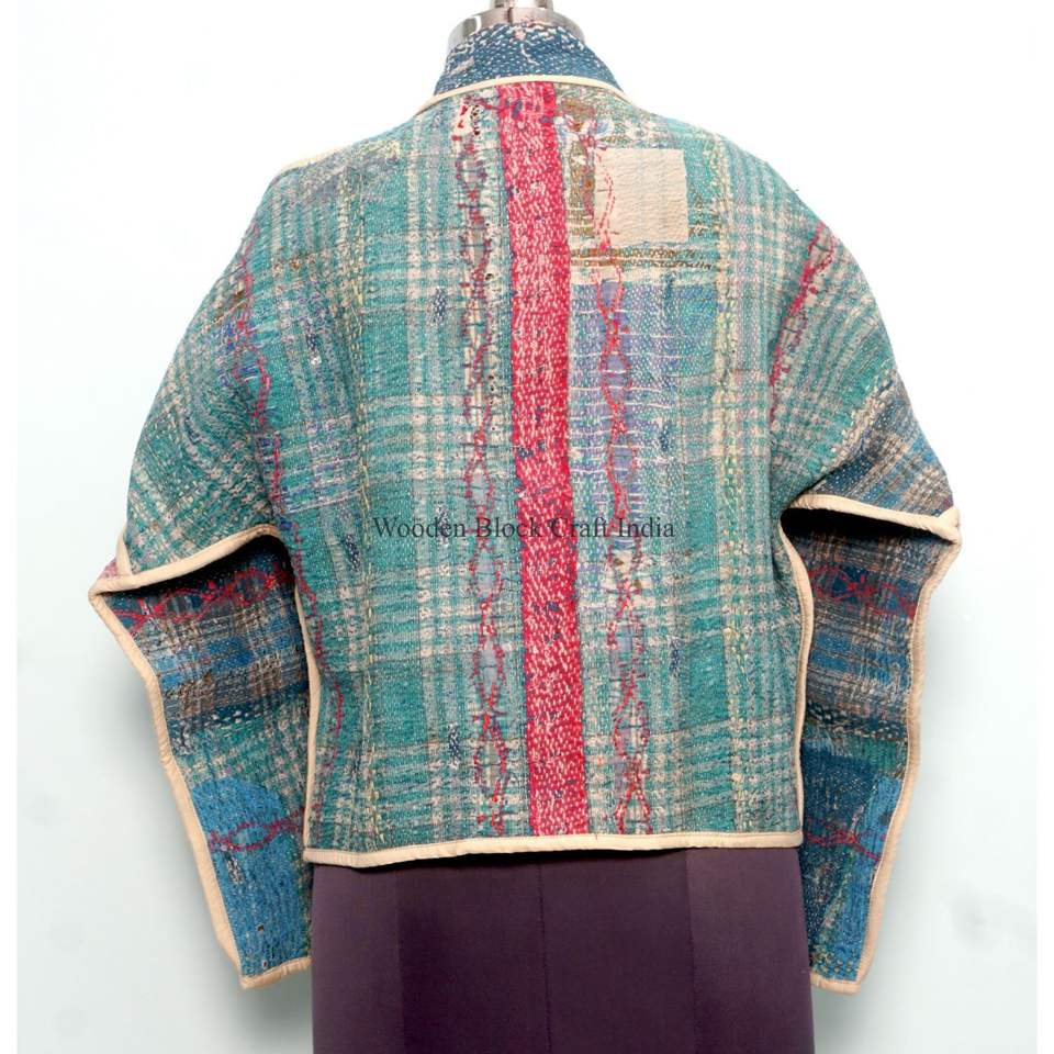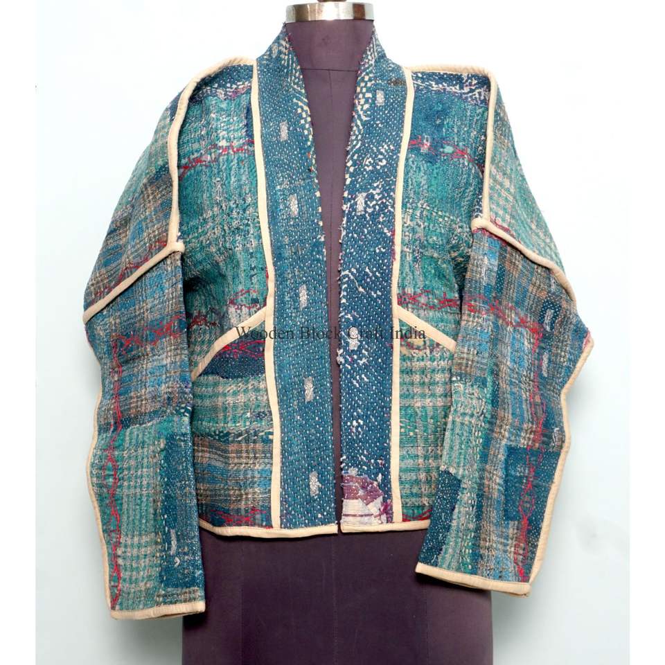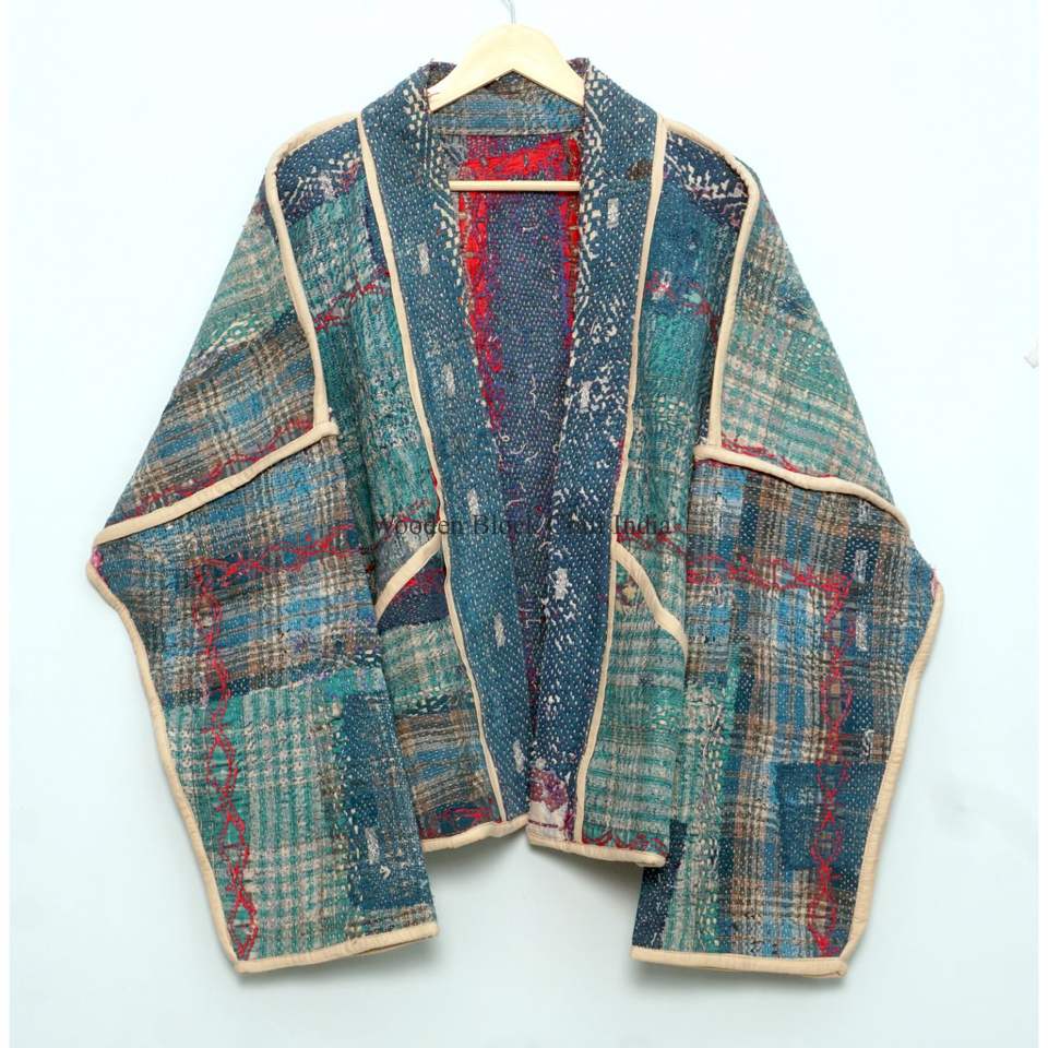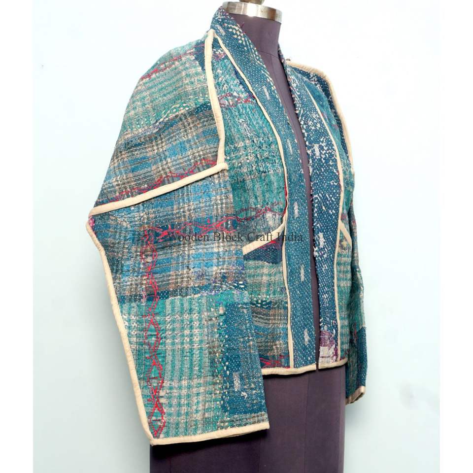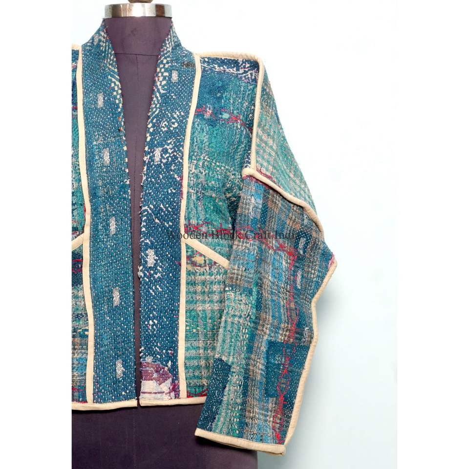 เสื้อแจ็คเก็ตผ้าฝ้ายปะติดปะต่อหลากสีสไตล์อินเดีย งานแฮนด์เมด พิมพ์ลายคันธา เป็นมิตรต่อสิ่งแวดล้อม สไตล์โบโฮ เหมาะสำหรับใส่ลำลอง