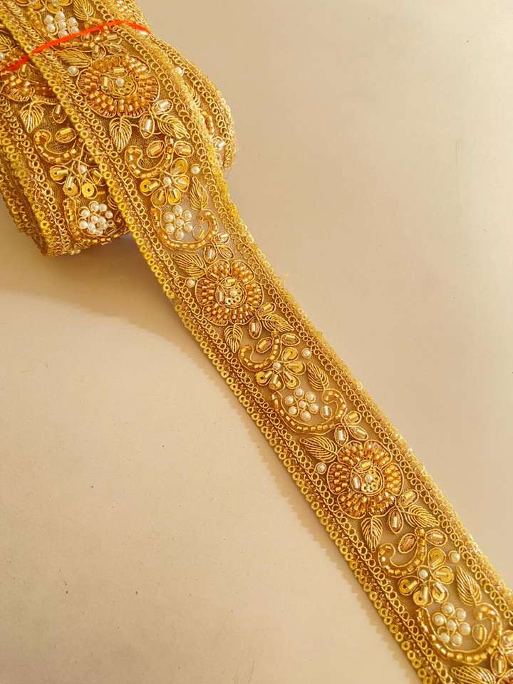 สินค้ามาใหม่ ลูกไม้ปักลายเมทัลลิกแบบอินเดียดั้งเดิม คุณภาพสูง เนื้อนุ่ม สำหรับตกแต่งรองเท้า ขายดี