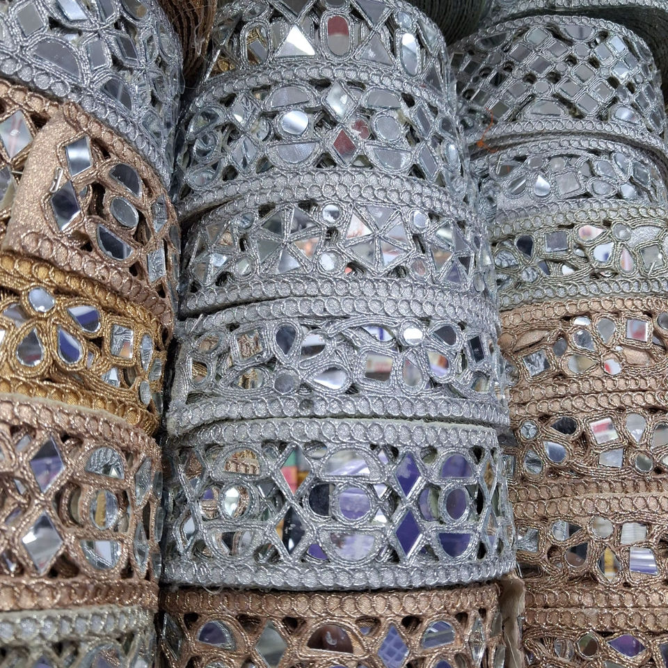 สินค้ามาใหม่ ลูกไม้ปักลายดอกไม้แบบเมทัลลิกคุณภาพสูงจากอินเดีย ซักได้ ใช้ตกแต่งรองเท้า ขนาด 2.5 นิ้ว ขายดี