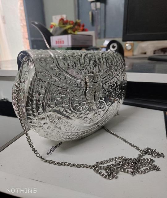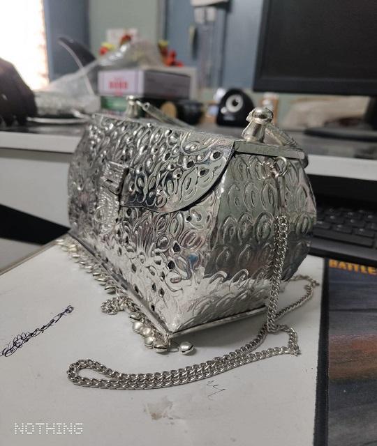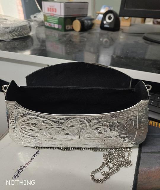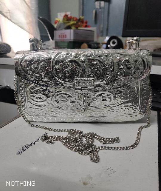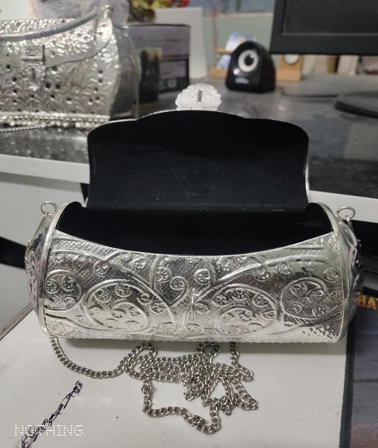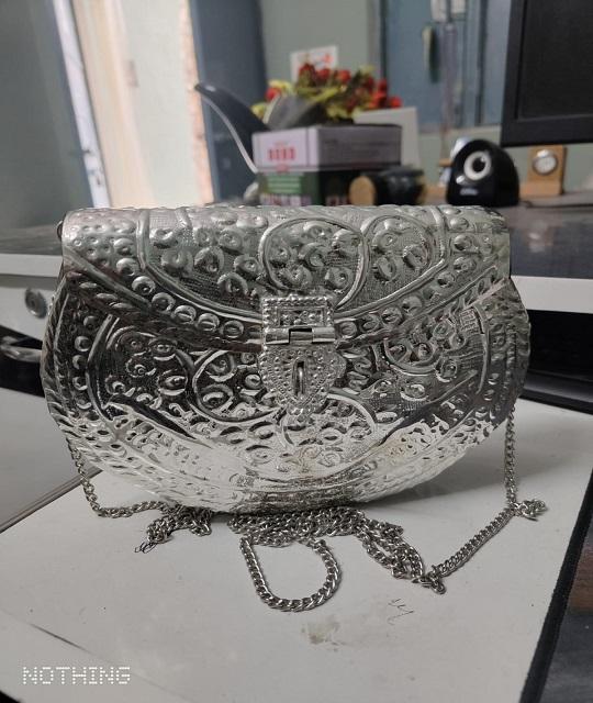 กระเป๋าคลัทช์ทรงสี่เหลี่ยมผืนผ้าทำมือจากทองเหลืองคุณภาพพรีเมียมอินเดีย ชุบเงินออกซิไดซ์ ดีไซน์ทันสมัย เหมาะสำหรับงานแต่งงาน