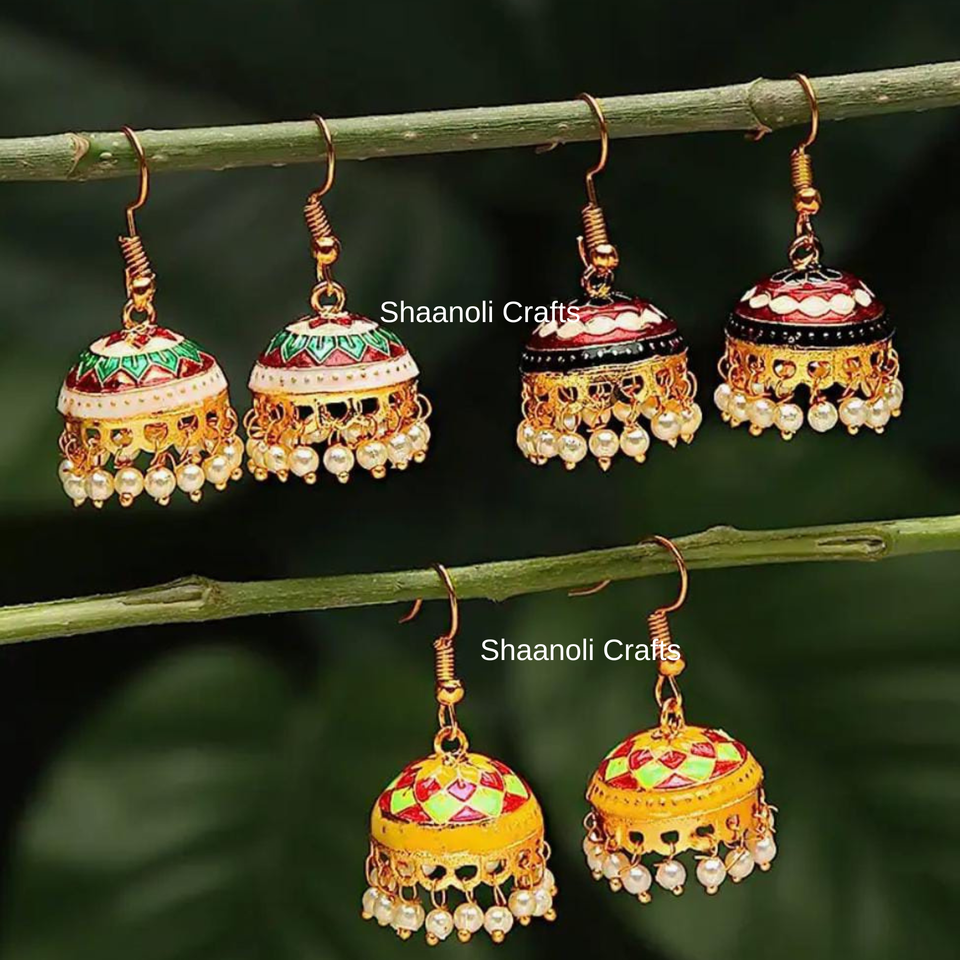 สินค้ามาใหม่สไตล์อินเดีย rajasthani หลากหลายสี meenakari ทองเหลือง jhumki ต่างหูชุบทองสตั๊ดสำหรับผู้หญิงเครื่องประดับงานแต่งงาน