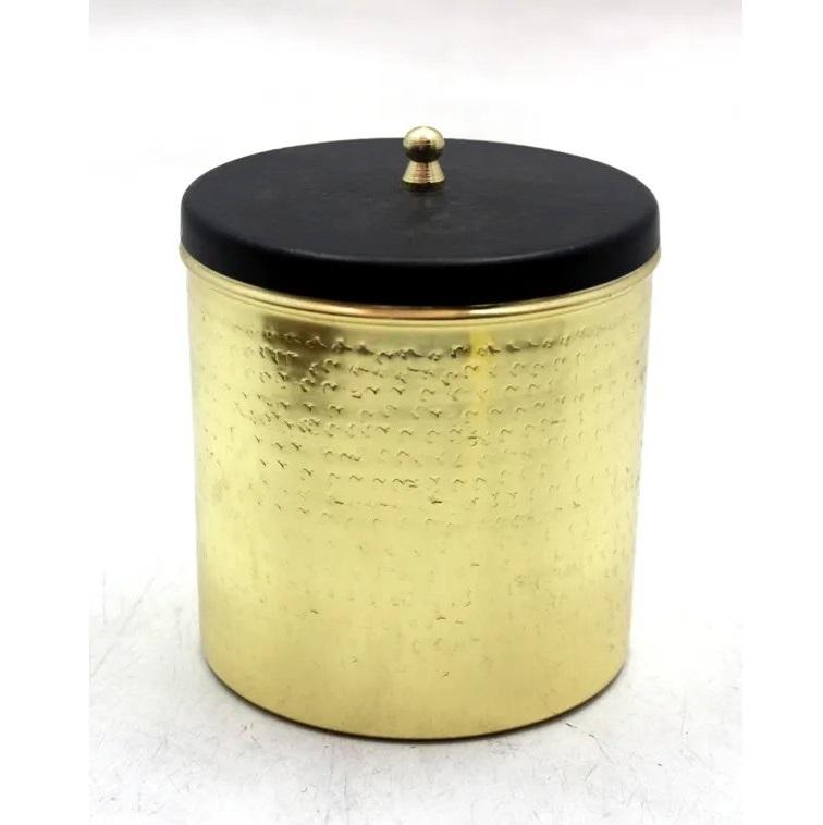 กล่องเหล็กทรงกลมเคลือบสีทองสำหรับบ้านเครื่องครัวกล่องเก็บของตกแต่งทำด้วยมือ