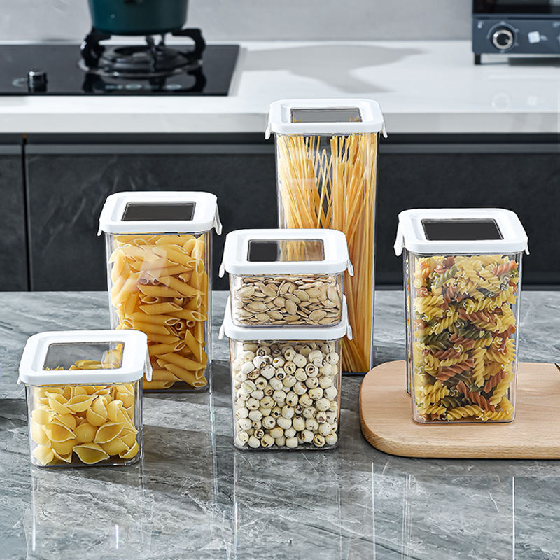 ชุดกระป๋องพลาสติกไร้สาร BPA ภาชนะเก็บอาหารแบบสุญญากาศพร้อมฝาปิดสีขาวสำหรับเก็บในห้องครัวสินค้ามาใหม่