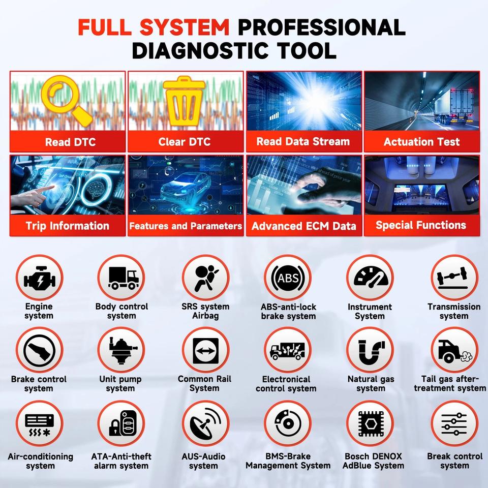 ประเภทรายการ:เครื่องวิเคราะห์เครื่องยนต์, เครื่องมือวินิจฉัยรถยนต์, เครื่องมือสแกน, เครื่องมือวินิจฉัยรถบรรทุก