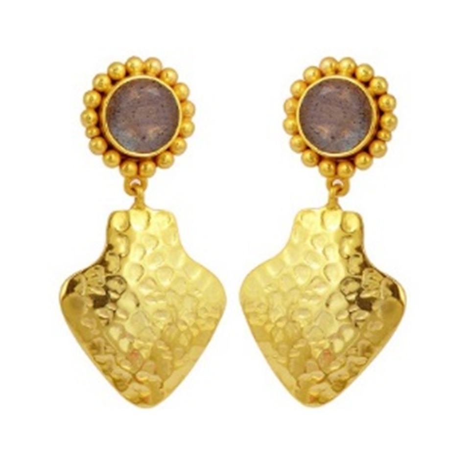 ใหม่มาถึง Labradorite Chalcedony พลอย925สเตอร์ลิงรอบรูปร่างต่างหูเงิน