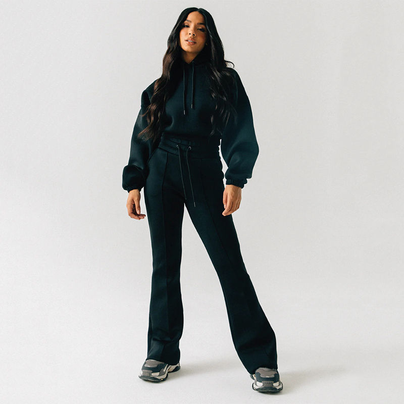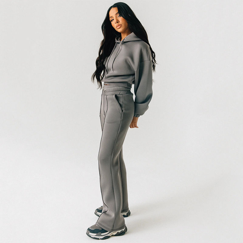 สินค้ามาใหม่ ชุดเซ็ต 2 ชิ้นสำหรับผู้หญิง ฤดูใบไม้ร่วง-ฤดูหนาว เสื้อฮู้ดดี้สตรีทแวร์ ระบายอากาศได้ดี สวมใส่สบาย ผ้าฝ้าย 100% ความยาวระดับเข่า