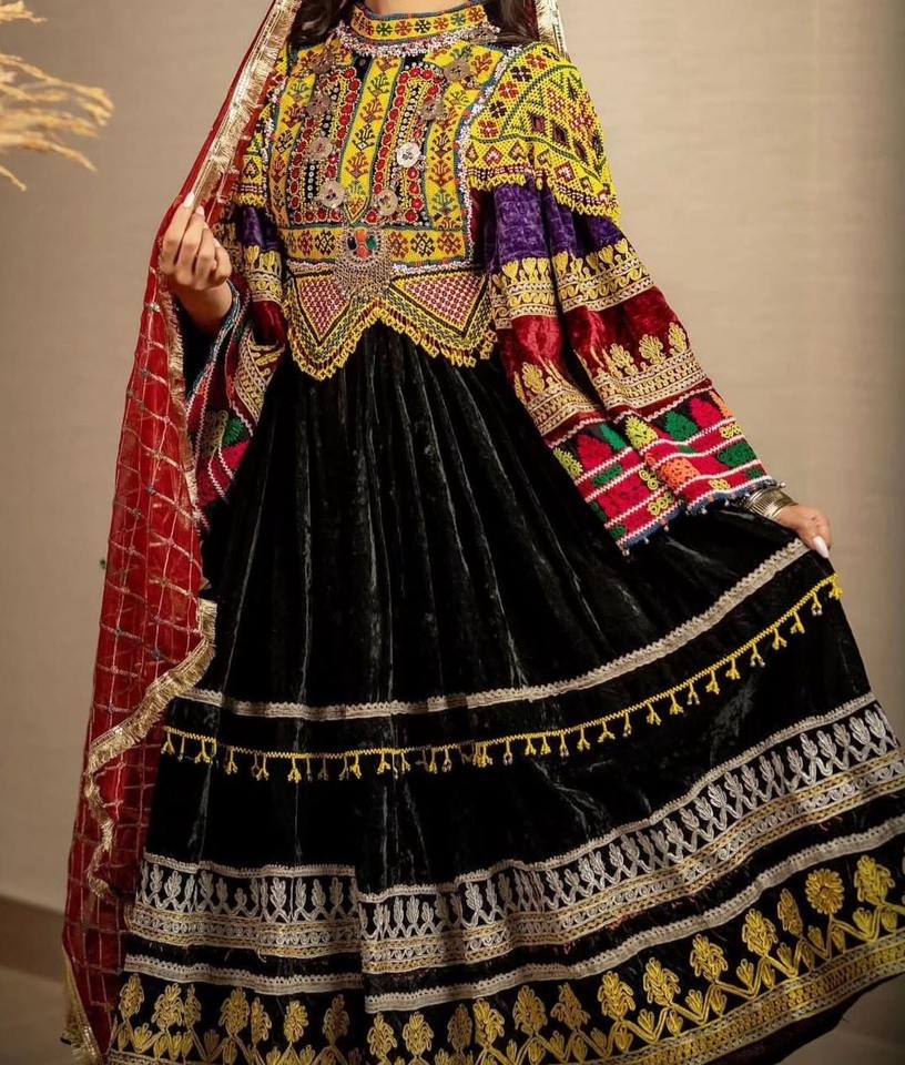 ชุดเดรสยาวสไตล์อัฟกานิแบบใหม่สำหรับผู้หญิง ดีไซน์หรูหรา แฟชั่นชนเผ่าอัฟกัน คูชี เซอร์โดซ ชุดเดรสชนเผ่าอัฟกัน