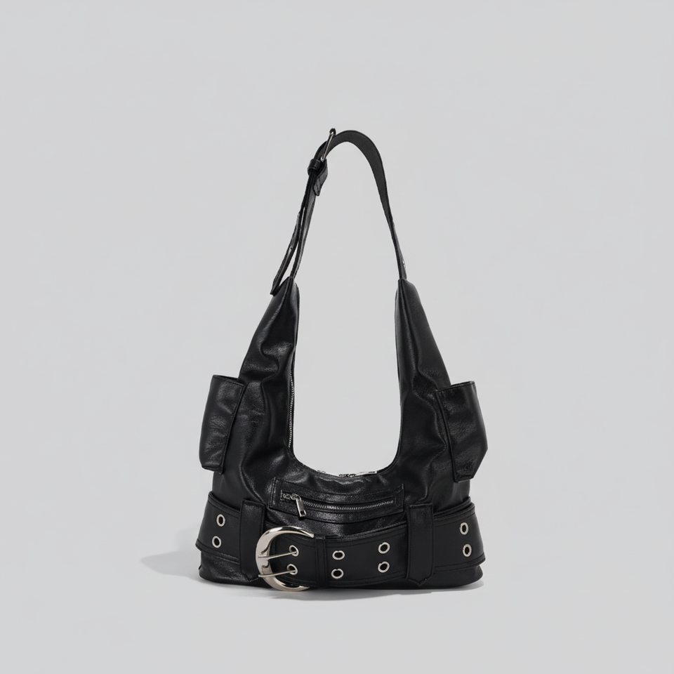 กระเป๋าถือครอสบอดี้ทรงครึ่งวงกลมสำหรับผู้หญิง หนังแท้ แฟชั่น กระเป๋าสะพายใต้วงแขน สีเงิน สำหรับผู้หญิง