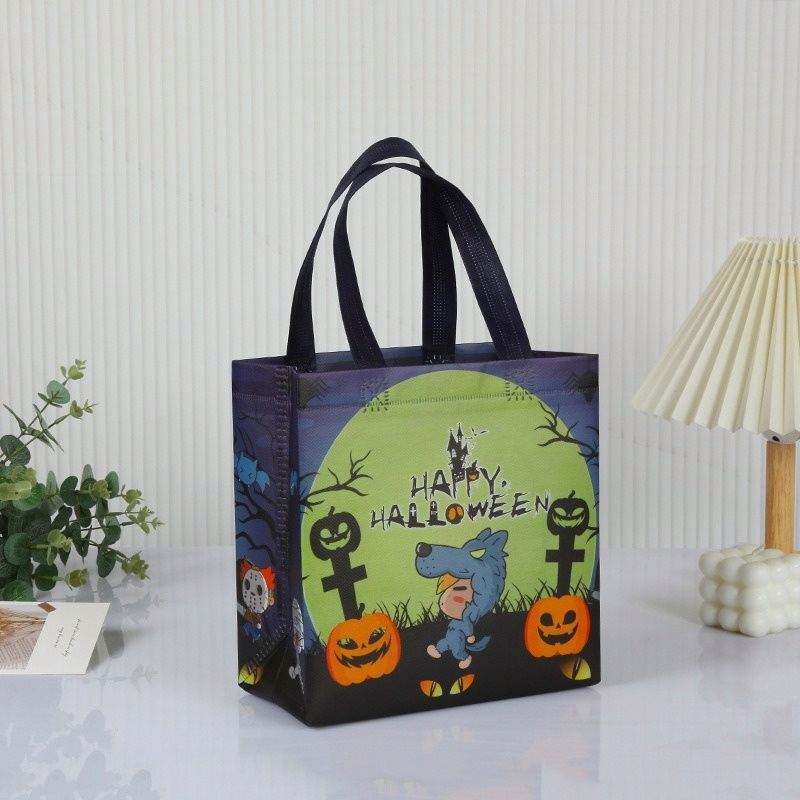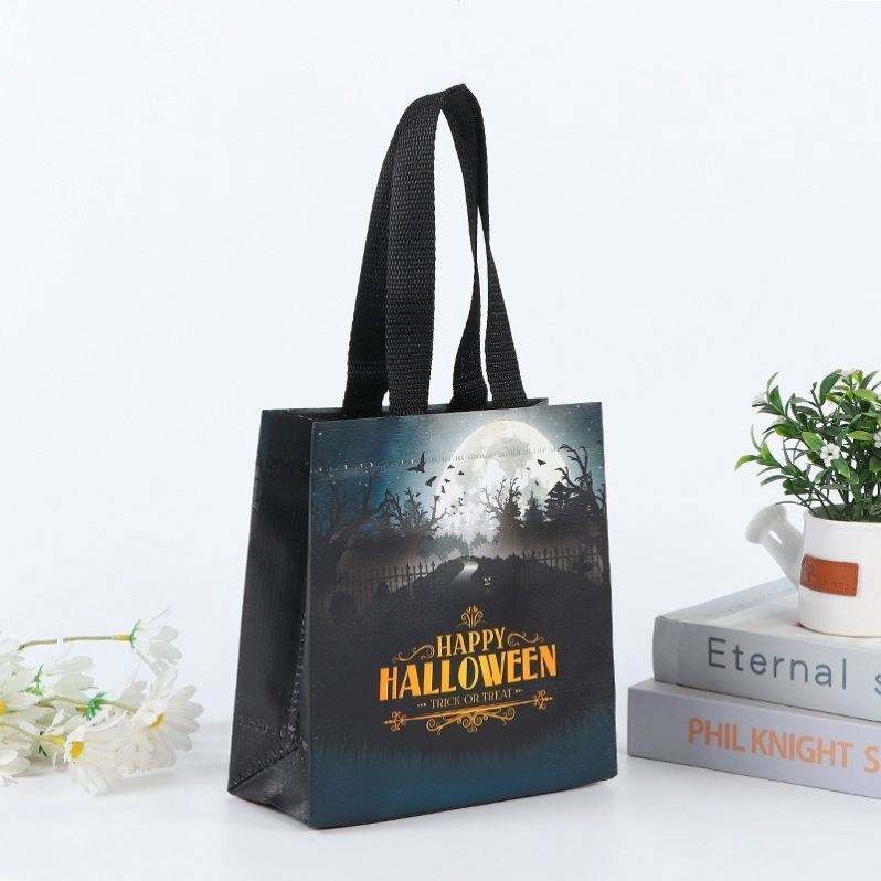 กระเป๋าผ้าลามิเนตแบบใช้ซ้ำได้ลายพิมพ์สีสันสดใสสำหรับใส่ขนมฮาโลวีน ของขวัญ รุ่นใหม่ล่าสุด