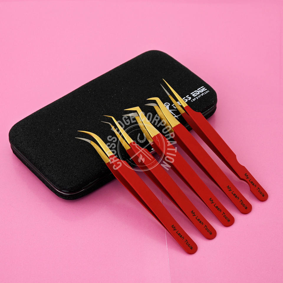 แหนบต่อขนตาเพิ่มวอลลุ่มแหนบเส้นใยแหนบแบบรัสเซีย45 90องศาปลายพัดเพิ่มวอลลุ่มแหนบสีแดงด้าน