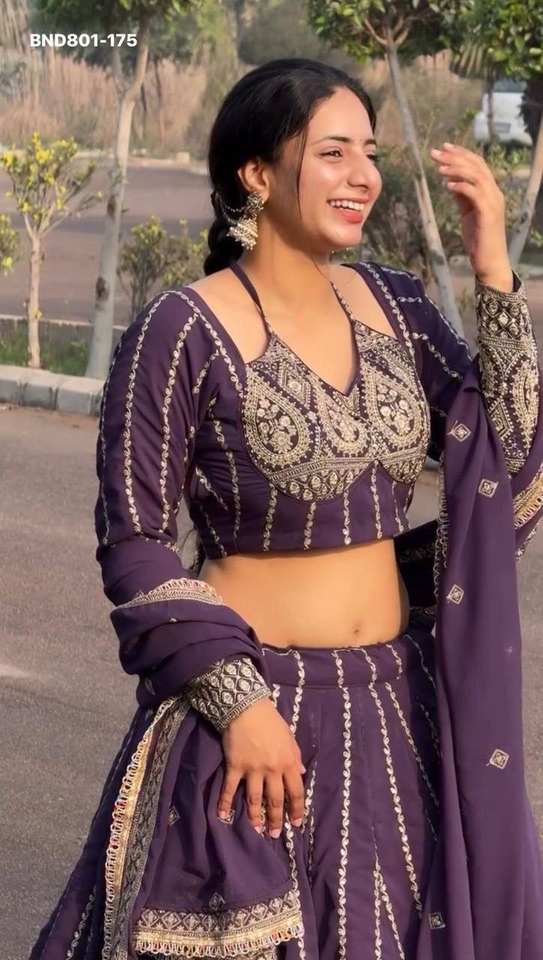 สินค้ามาใหม่ ชุดเลเฮนกาผ้าจอร์เจตต์ลายปักประดับเลื่อม ดีไซน์เนอร์ พร้อมชุดโชลีและผ้าคลุมไหล่ จากซัพพลายเออร์อินเดีย