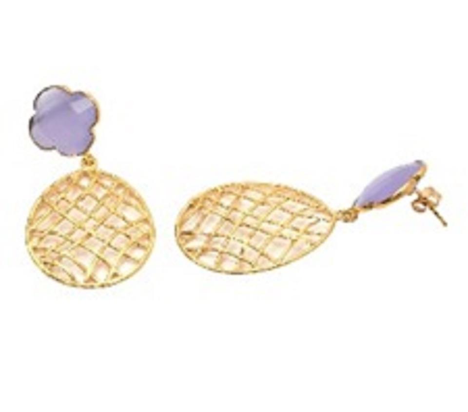 มาใหม่ลาเวนเดอร์ Chalcedony พลอย925สเตอร์ลิงโคลเวอร์รูปร่างต่างหู