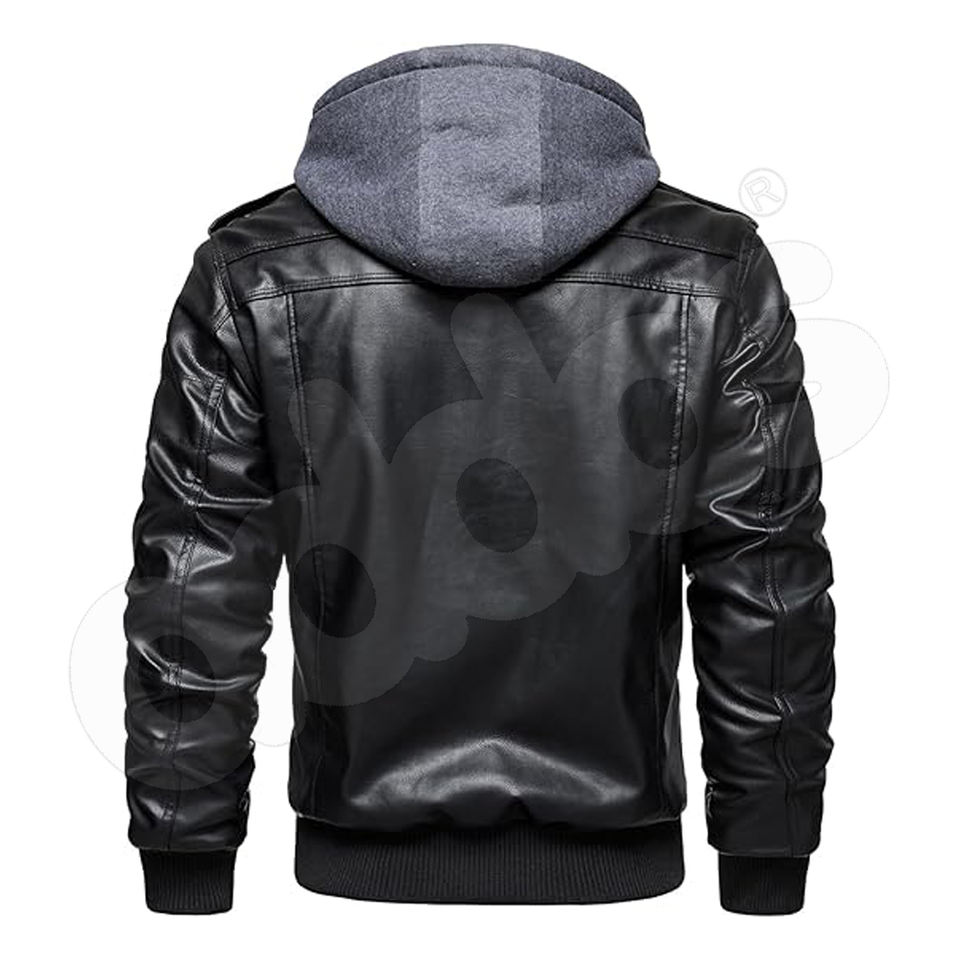 แจ็คเก็ตหนังรุ่นใหม่สำหรับผู้ชาย สีสันตามสั่ง แจ็คเก็ตหนังเทียมแบบซิป แจ็คเก็ตมอเตอร์ไซค์ทรงบอมเบอร์ พร้อมฮู้ดถอดได้