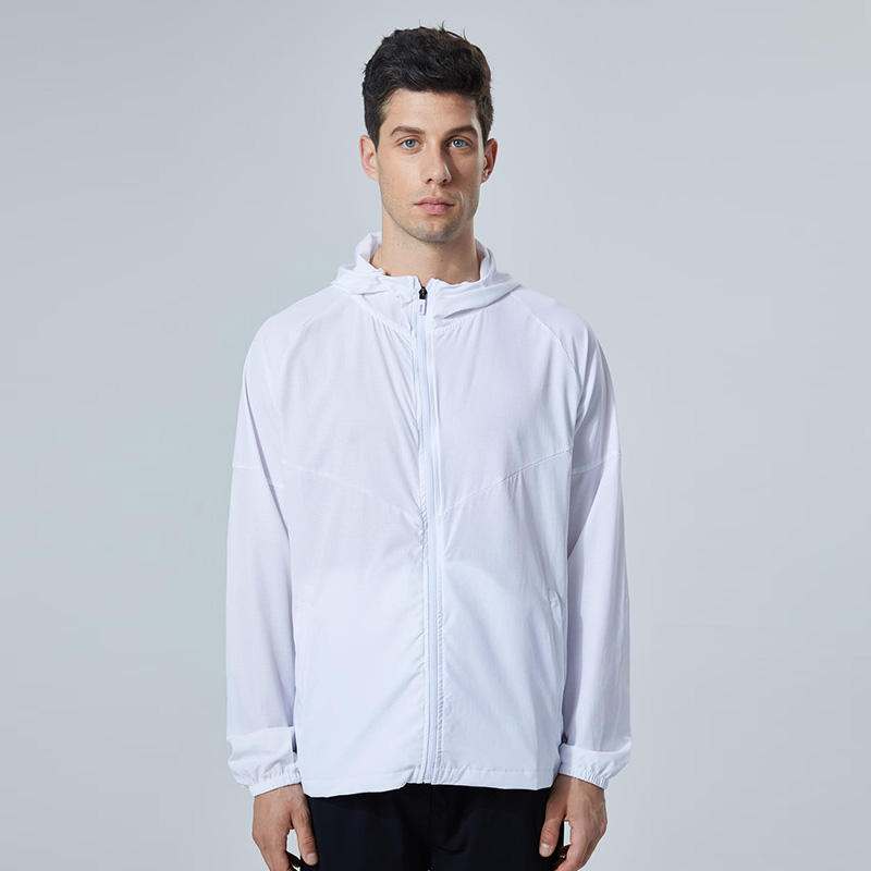 เสื้อแจ็คเก็ตกันลมมีฮู้ดสำหรับเล่นกีฬากันลมมีซิปแบบเต็มสีพื้นเป็นมิตรกับผิวสินค้าใหม่