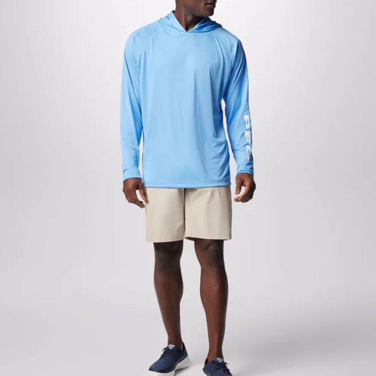 เสื้อตกปลาแขนยาวมีฮู้ดกันแดด UPF50+ ผ้าโพลีเอสเตอร์ผสมคอตตอน ระบายอากาศได้ดี สำหรับผู้ชาย รุ่นใหม่ล่าสุด