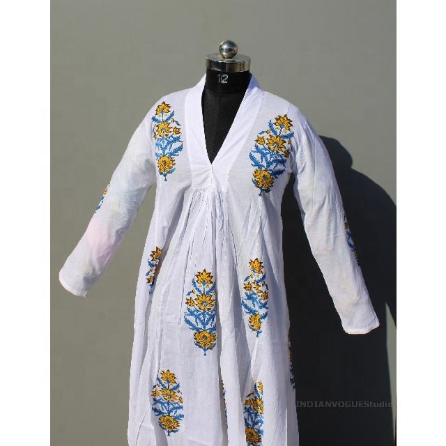ชุดเดรสผ้าฝ้ายแขนยาวพิมพ์ลายแขนยาวมาใหม่สำหรับฤดูร้อนสไตล์อินเดีย