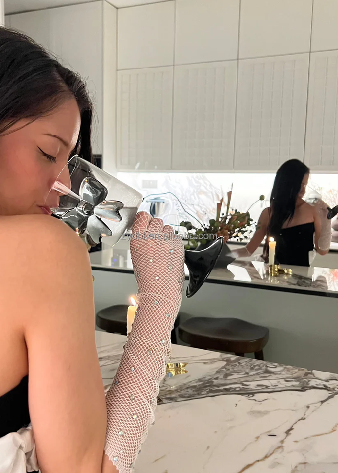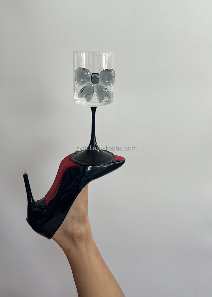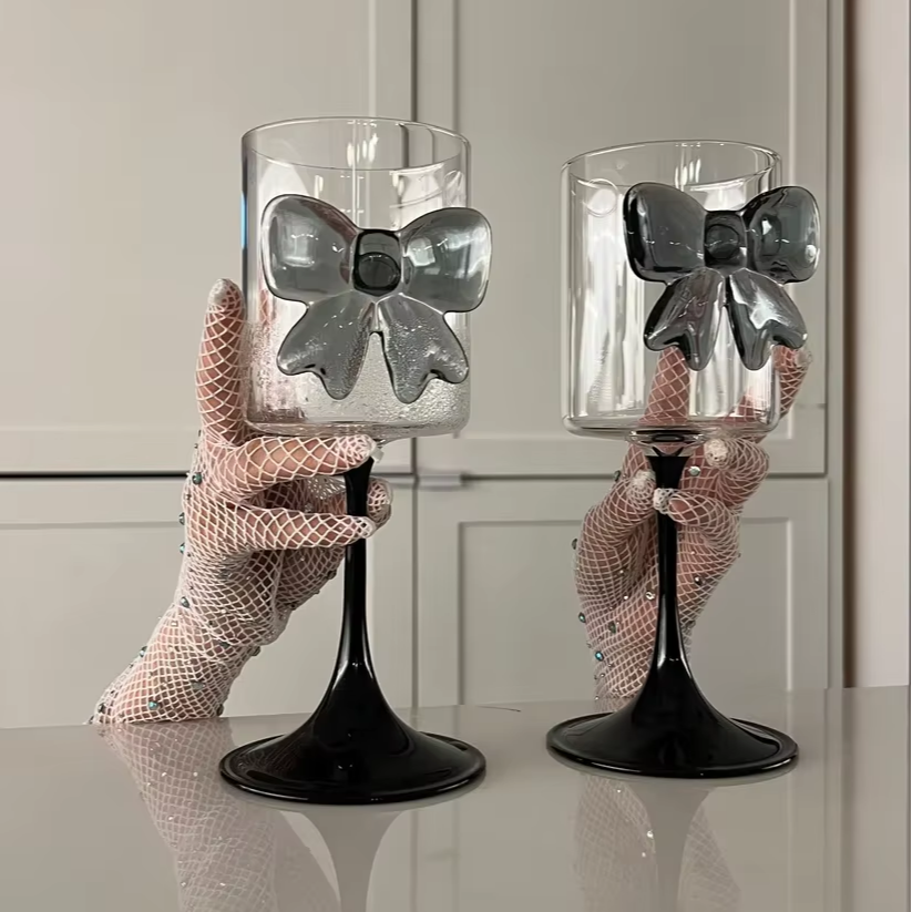 แก้วทรงสูงดีไซน์โบว์เก๋ไก๋ ราคาพิเศษสำหรับสินค้ามาใหม่ แก้วไวน์ค็อกเทลขาสีดำทันสมัย ประดับโบว์วิบวับ เหมาะสำหรับเป็นของขวัญและใช้ในชีวิตประจำวัน