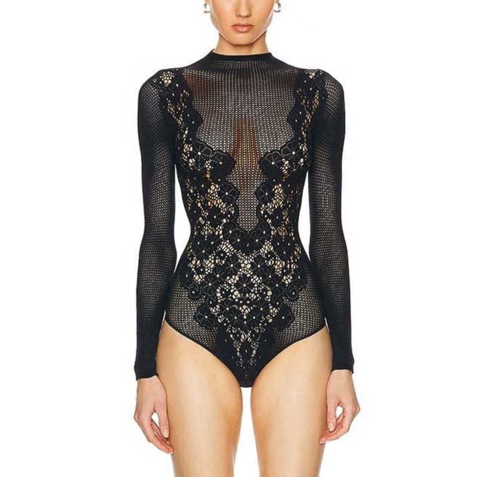 New Arrival Low Price High Quality Autumn Customized Lace Bodysuit Long Sleeve 100% Cotton Floral Sexy OOTD Women Bodysuit