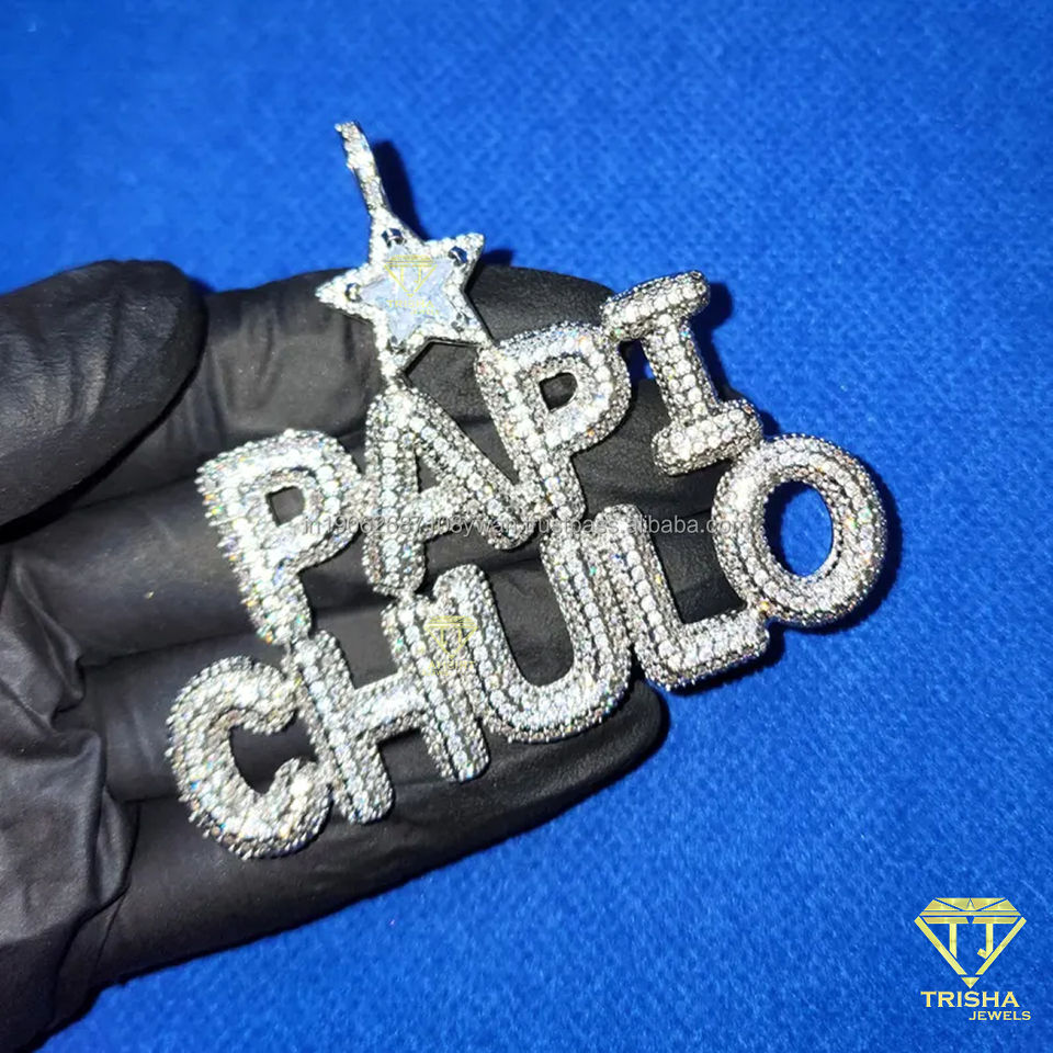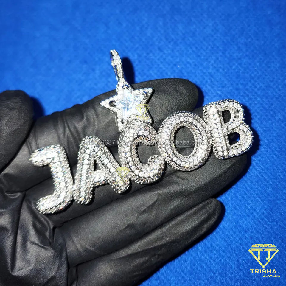 925หรูหรามาใหม่จี้เงินสเตอร์ลิงออกแบบได้ตามต้องการชื่อ VVS ชัดเจนเครื่องประดับเพชรสไตล์ฮิปฮอป