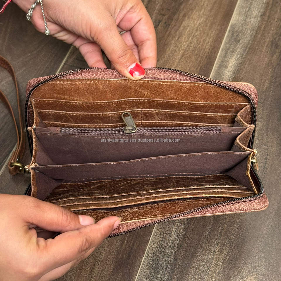 กระเป๋าสตางค์หนังวัวหรูหรามาใหม่กระเป๋าเงินหนังวัวแท้มีซิปปิดแบบรูดบัตรเครดิต