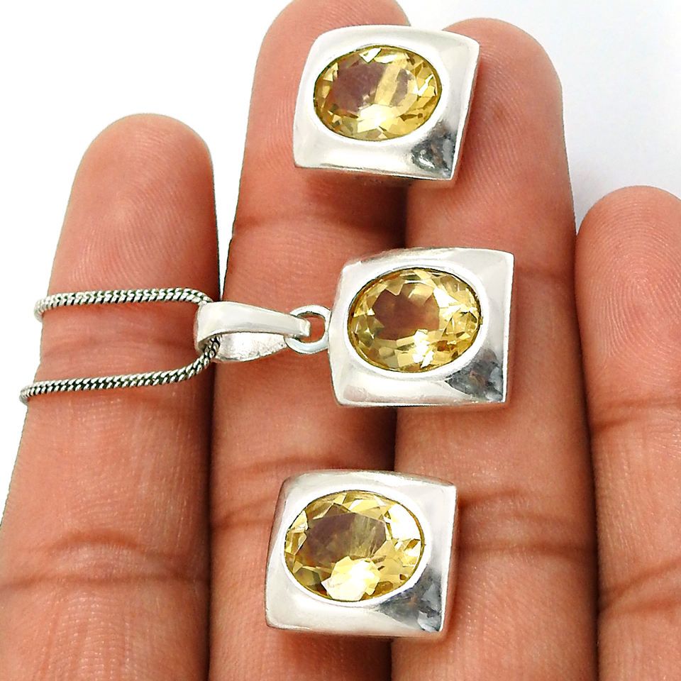 ชุดเครื่องประดับทำมือรูปวงรีอัญมณีซิทรีนธรรมชาติทำ925เงินสเตอร์ลิงดีไซน์หรูออกใหม่สำหรับงานเลี้ยงวันเกิด