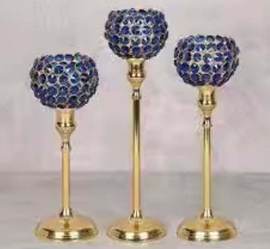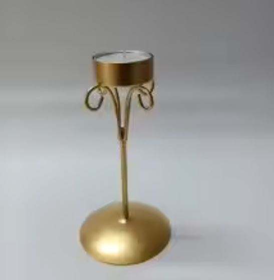 เชิงเทียนโลหะสำหรับตกแต่งอลูมิเนียมดีไซน์ใหม่พร้อมเรนเดียร์สีเหลืองตกแต่งบ้าน