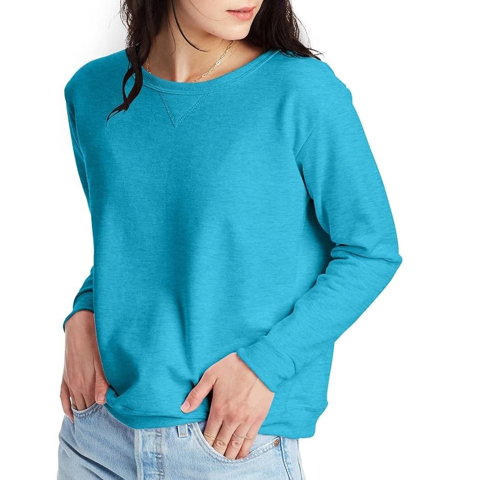 เสื้อสเวตเตอร์คอกลมแขนยาวสำหรับผู้หญิงผ้าคอตต้อนลำลองสีพื้นแบบเปิดไหล่แขนยาว