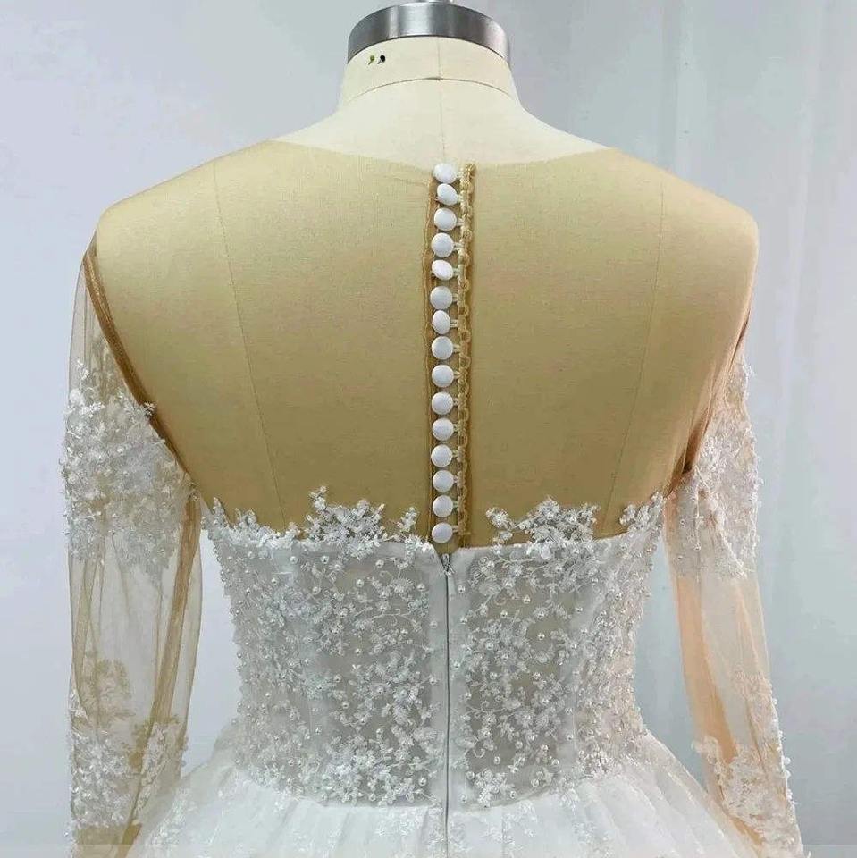 ชุดแต่งงานเจ้าหญิงสุดหรูแบบใหม่ล่าสุด แขนยาว ประดับด้วยลูกปัดมุก ทรงบอลกาวน์ พร้อมชายกระโปรงยาว
