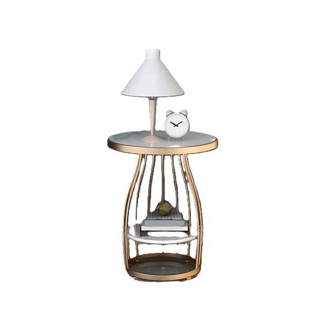 โต๊ะข้างเตียงทรงกลมหรูหรามาใหม่พร้อมกรอบโลหะสีทองและชั้นเก็บของ