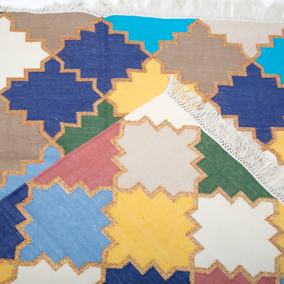 พรมเช็ดเท้าผ้าฝ้ายทอมือลายชินดีแบบใหม่ รักษ์โลก สไตล์โบโฮ ซักได้ ขนปานกลาง รูปทรงสี่เหลี่ยมผืนผ้า ผลิตในรัฐฮารีน่า เหมาะสำหรับตกแต่งบ้าน