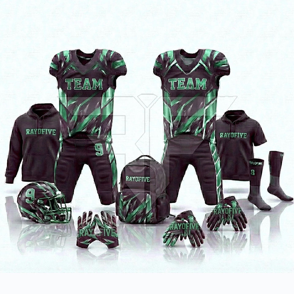 ชุดอเมริกันฟุตบอลสำหรับผู้ชายรุ่นใหม่ Combo-100% โพลีเอสเตอร์ ระบายอากาศได้ดี ซึมซับเหงื่อ ป้องกันแบคทีเรีย แห้งเร็ว