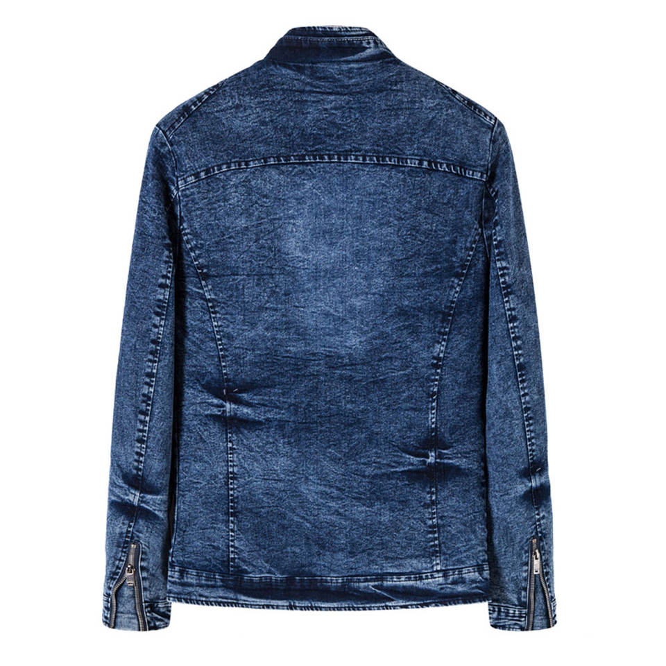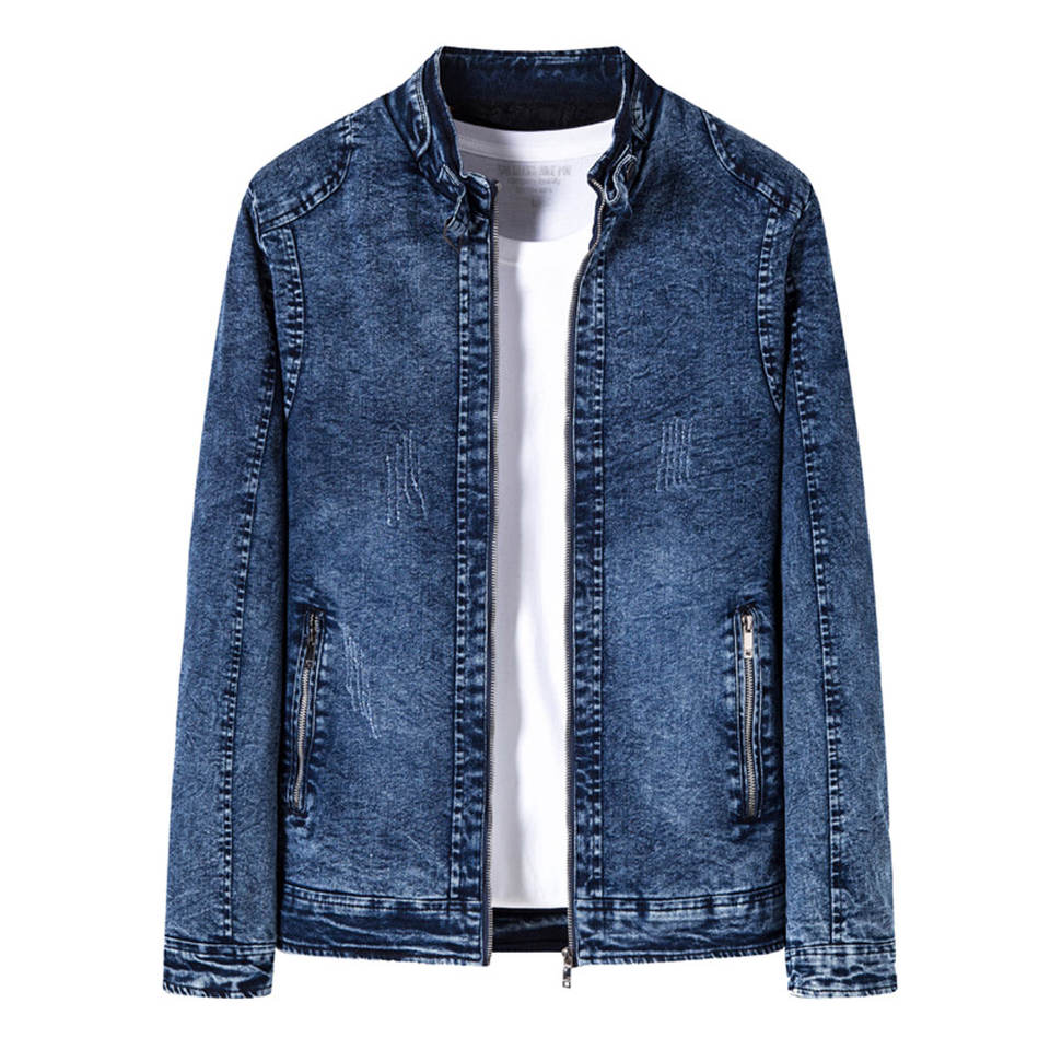 แจ็กเก็ตผ้ายีนส์แบบคลาสสิกของผู้ชายเสื้อแจ็กเก็ตผ้ายีนส์แขนยาวระบายอากาศได้น้ำหนักเบาขายดี