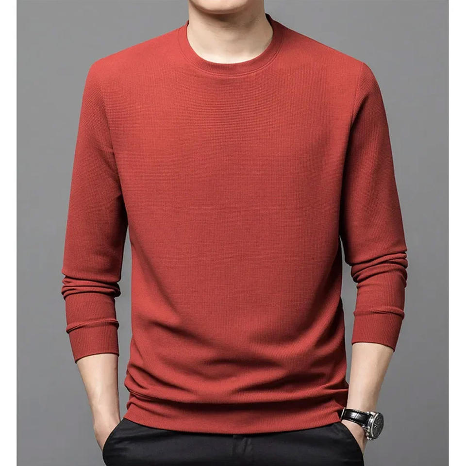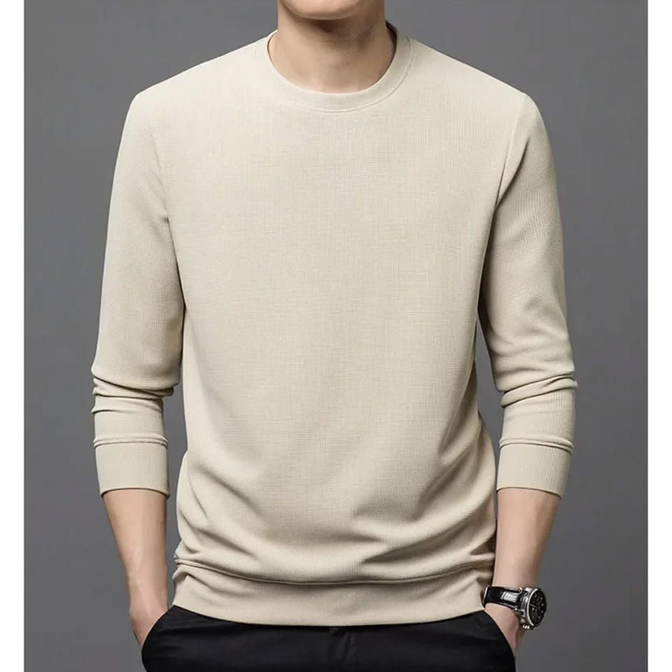 เสื้อยืดคอกลมแขนยาวสำหรับผู้ชายมาใหม่เสื้อแนวสตรีทสีพื้นเสื้อพลัสไซส์สำหรับผู้ชาย