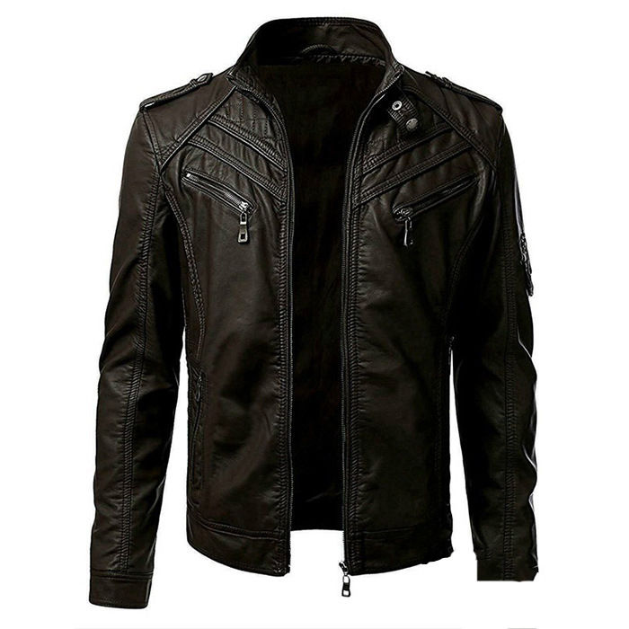 แจ็กเก็ตหนังนุ่มสำหรับผู้ชายเสื้อแจ็คเก็ตหนังแขนยาวสำหรับฤดูใบไม้ผลิและฤดูใบไม้ร่วง