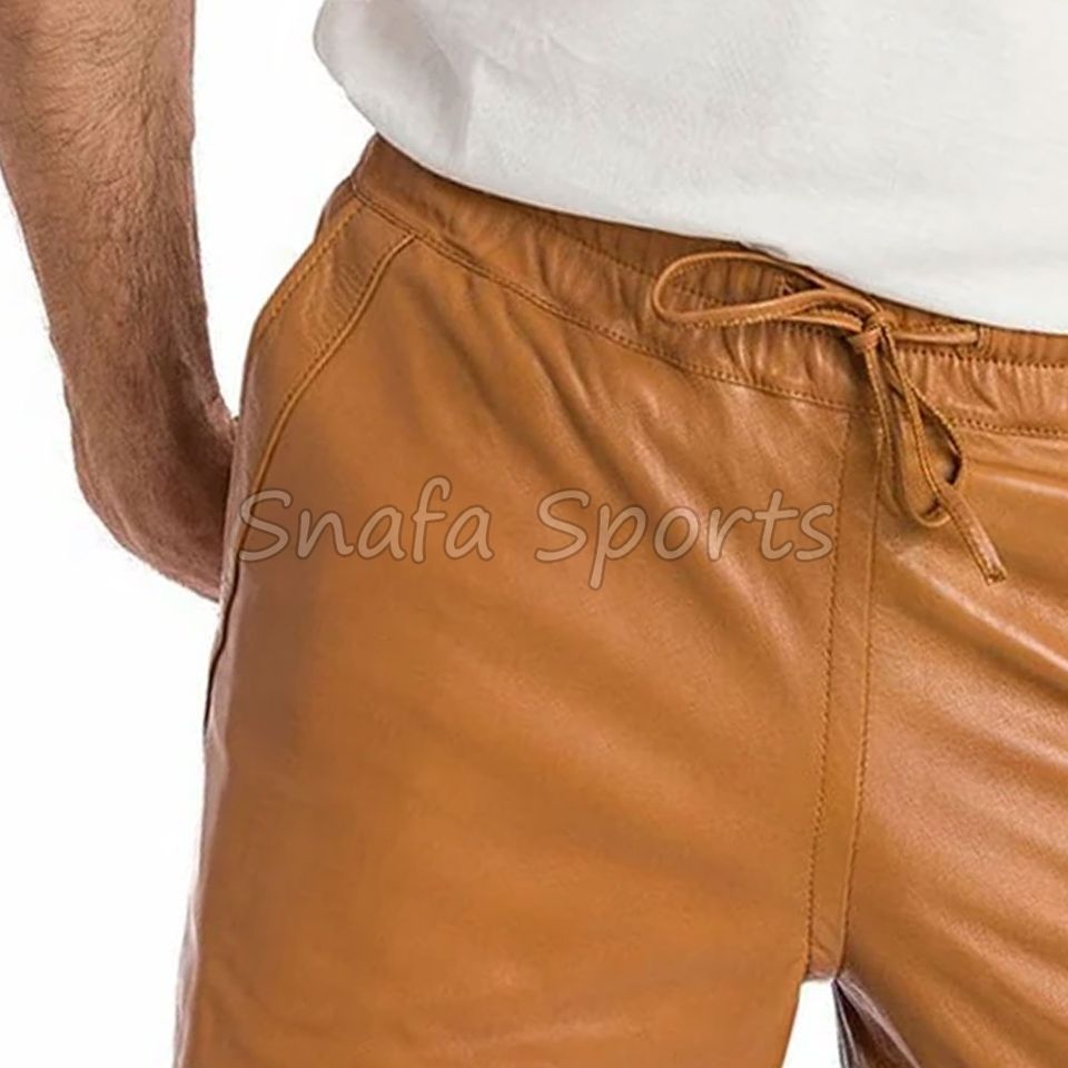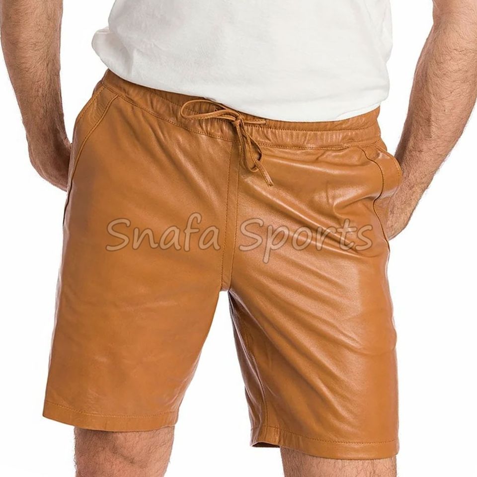 กางเกงขาสั้นหนังผู้ชายรุ่นใหม่ สั่งทำได้ ใส่ลำลองและออกกำลังกายได้ มีเชือกผูกเอว ขายแล้ว