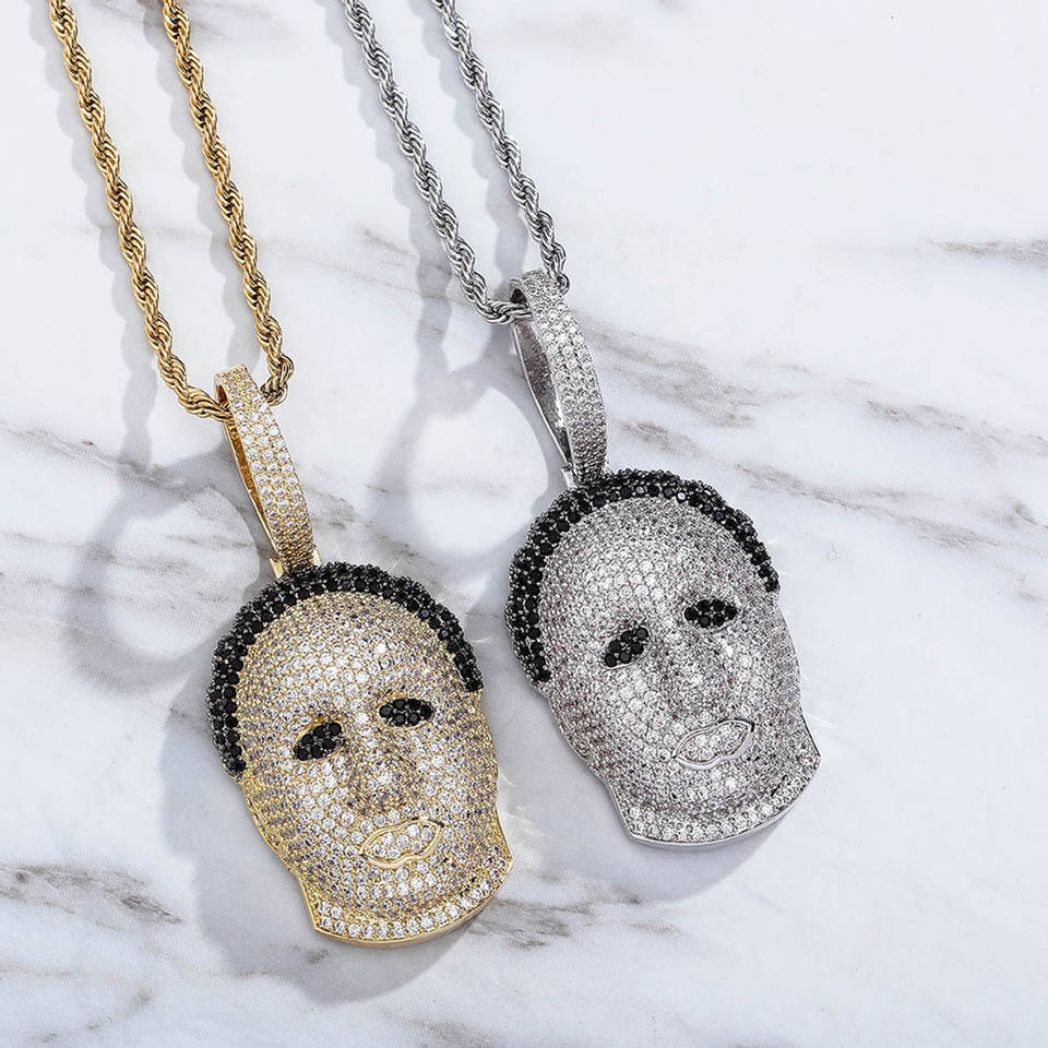 สินค้ามาใหม่สร้อยคอชุบทอง14K สำหรับผู้ชายสร้อยคอเพชรโมอิสสไตล์ฮิปฮอปจี้หัวผีฮาโลวีนทำด้วยน้ำแข็งและชุบทองสำหรับ