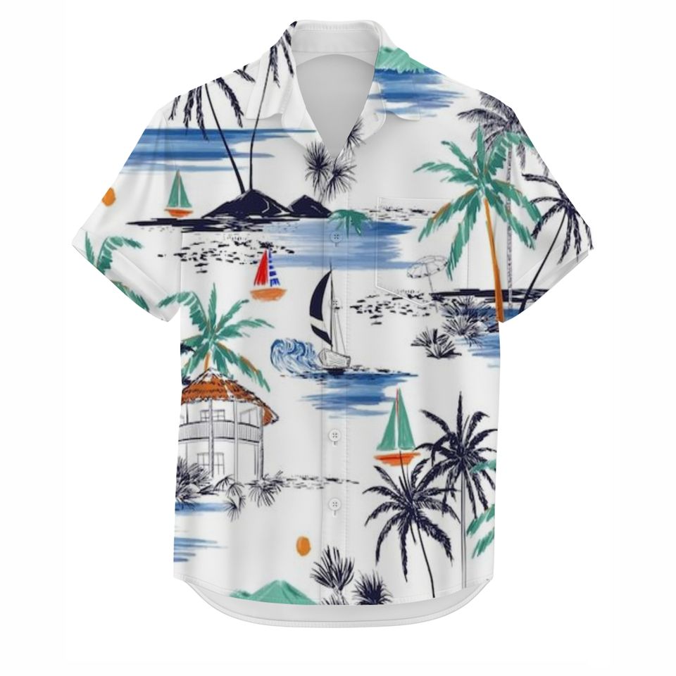 เสื้อเชิ้ตชายหาดพิมพ์ลายฮาวายแบบถัก ระบายอากาศได้ดี ติดกระดุม ดีไซน์ใหม่ล่าสุด รับออกแบบตามสั่ง