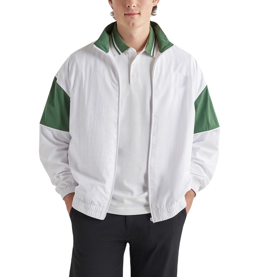 เสื้อแจ็คเก็ตผ้าแคนวาสสำหรับผู้ชายมาใหม่เสื้อกีฬาลำลองแบบยืนด้านหน้าปรับแต่งสีได้เสื้อกันลมระบายอากาศบางๆสำหรับกลางแจ้ง