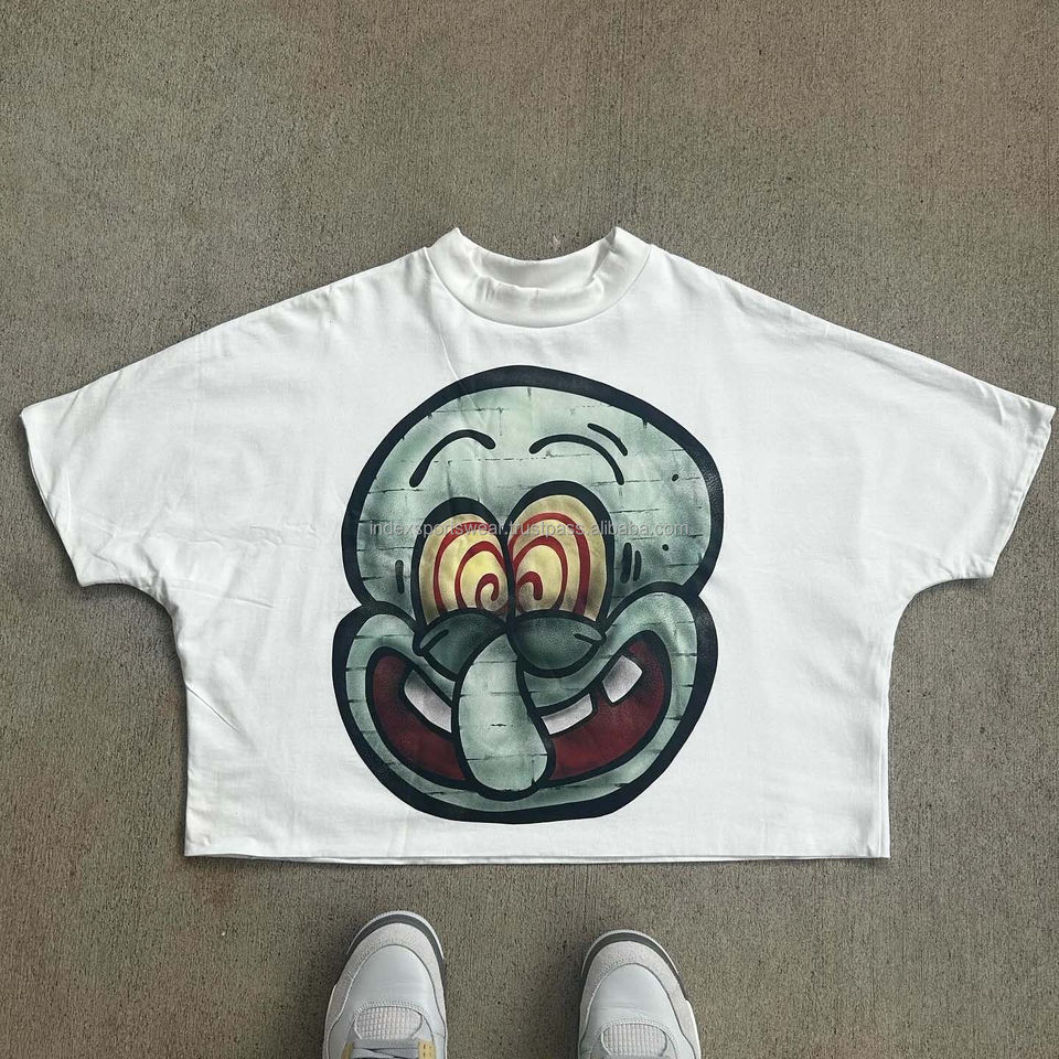 เสื้อยืดผ้าฝ้ายบ็อกซี่แบบลำลองของผู้ชายมาใหม่เสื้อยืดแนวสตรีทเสื้อฮิปฮอปลายการ์ตูนออกแบบได้ตามต้องการแบบ Y2K